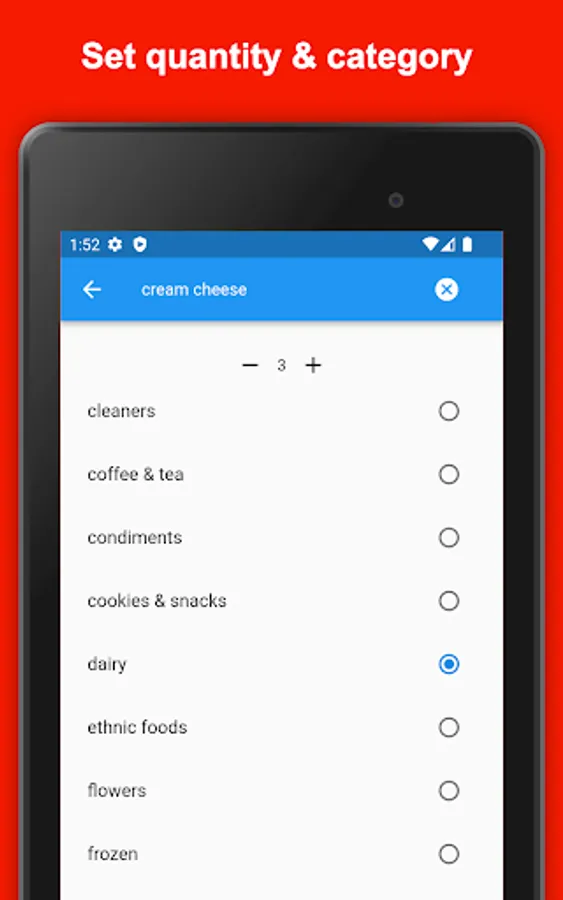 9. Grocery lists come with default categories that you can use to group your items by store department. This makes shopping faster.
