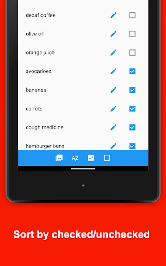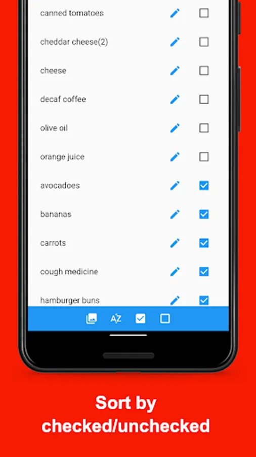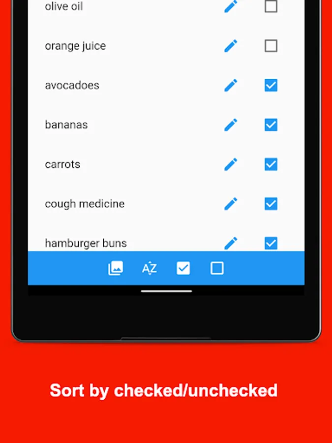 3. Filter items by checked, unchecked, ABC, or by group if it’s a grocery list.