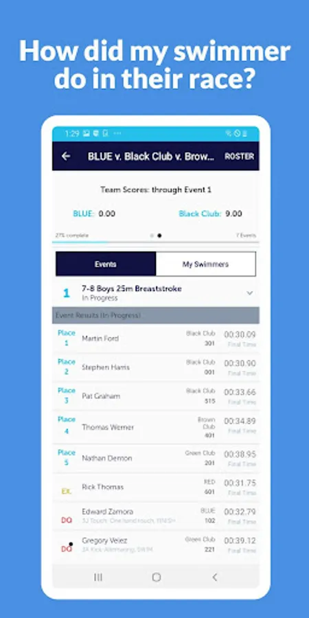 3. Live Results. Your Swimmingly results sync to SwimminglyFan in real-time. Enough said!