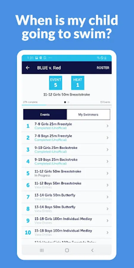 1. View the heat sheet for your club's swim meet! Optimized for your Android device, access your heat sheet at anytime right in your pocket.