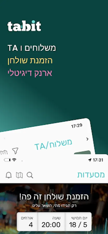 Looking for a place in a restaurant for tonight? Prefer to pamper yourself in front of the TV and have the food delivered to you? Just think about what you want to eat and the Tabit app will take care of everything else.