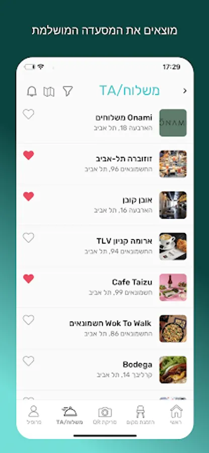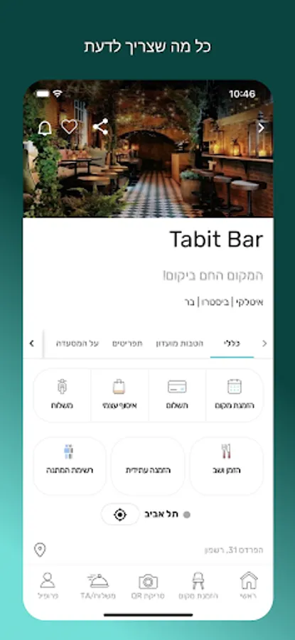 With Tabit you will see in seconds where there is a free table in the area you have chosen, browse the menu and be updated on the recommended dishes. You can also come pick up the food, or order it directly to the sofa in the living room and receive updates on the delivery in real time.