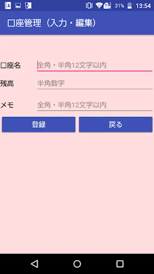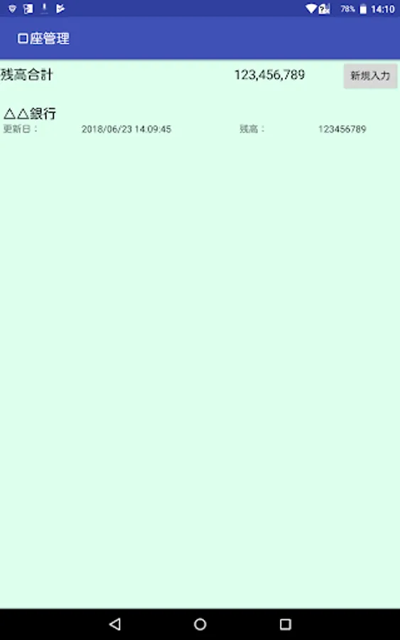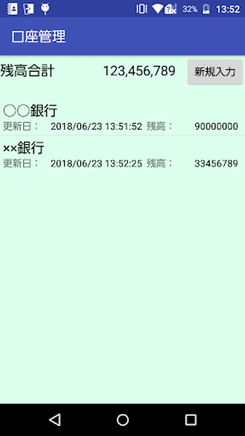 Main screen When you press the "New input" button, you can enter new data on the sub screen.