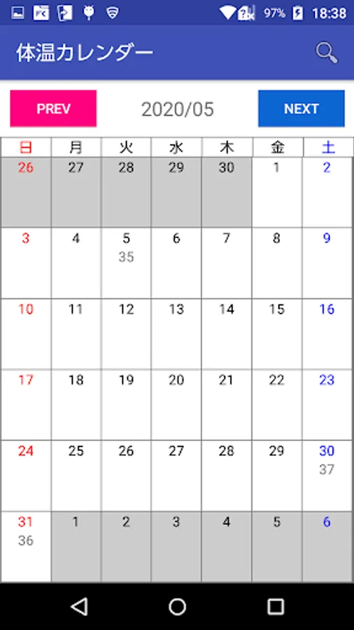 -"Body temperature table" button: You can check the body temperature table on the [Body temperature calendar] screen.