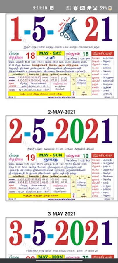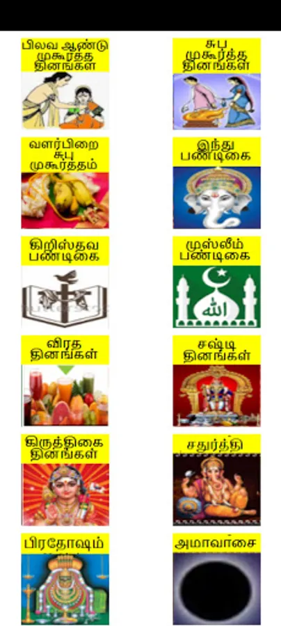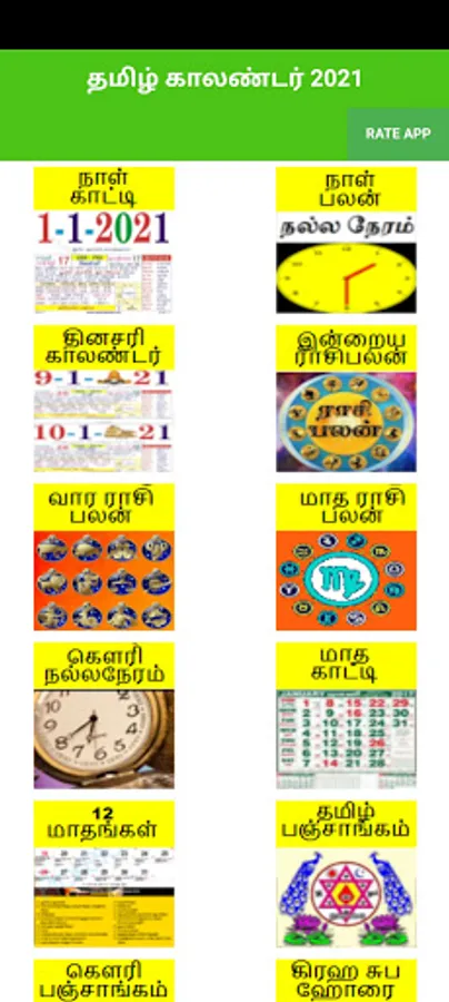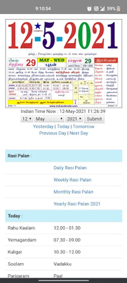 4.Displays the auspicious days, Rahu Kaalam, Yamagandam.
