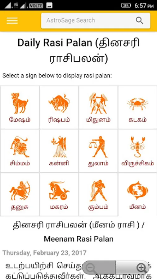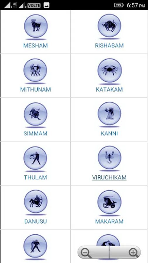 3.Monthly Rasi Palan- Just touch your zodiac and read your monthly Rasi Palan.
