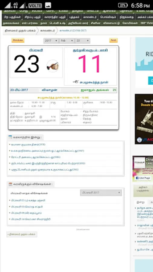 6.Daily calendar-watch today's day, date, ragu, Kuligai, Nallanarum, Yemagandam.