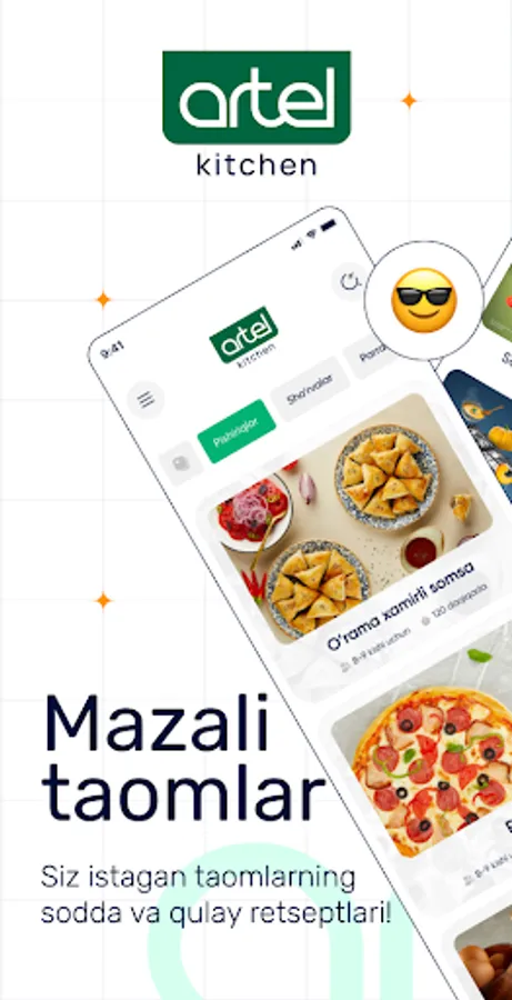 Xurmatli foydalanuvchi! Siz bilan ilova orqali diydorlashib turganimizdan juda ham xursandmiz. Artel oshxona texnikalari bilan simfoniya yaratishga, aniqroq qilib aytadigan bo‘lsam ta’mlar simfoniyasi yaratishga xarakat qildik. Ta'mlar simfoniyasi orqali siz azizlarga turli xil taomlar retseptini taqdim qilmoqchimiz. Retseptlar orasida milliy oshxonamizga va boshqa millat oshxonasiga oid taomlarni, an'anaviy, zamonaviy va xatto unitilib borilayotgan retseptlarni uchratishingiz mumkin. Shuningdek foydalanuvchilarimizga qulaylik bo‘lishi uchun, deyarli har bir retseptda video ham joylashtirilgan. Ushbu ilovada keltirilgan retseptlar bilan sizning kundalik taomnomangiz yanada boyishini va o‘z yaqinlaringizni xursand qilishingizni, shuning bilan birgalikda o‘zingiz ham oshxonada miriqib ijod qilishingizga sabab bo‘lishiga umidvormiz. Barchangizning dasturxoningizga baraka, xonadoningizga fayz va tanangizga xotirjamlik tilab qolamiz. Hurmat Bilan Artel!