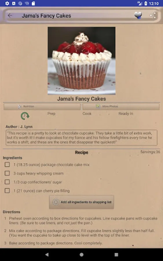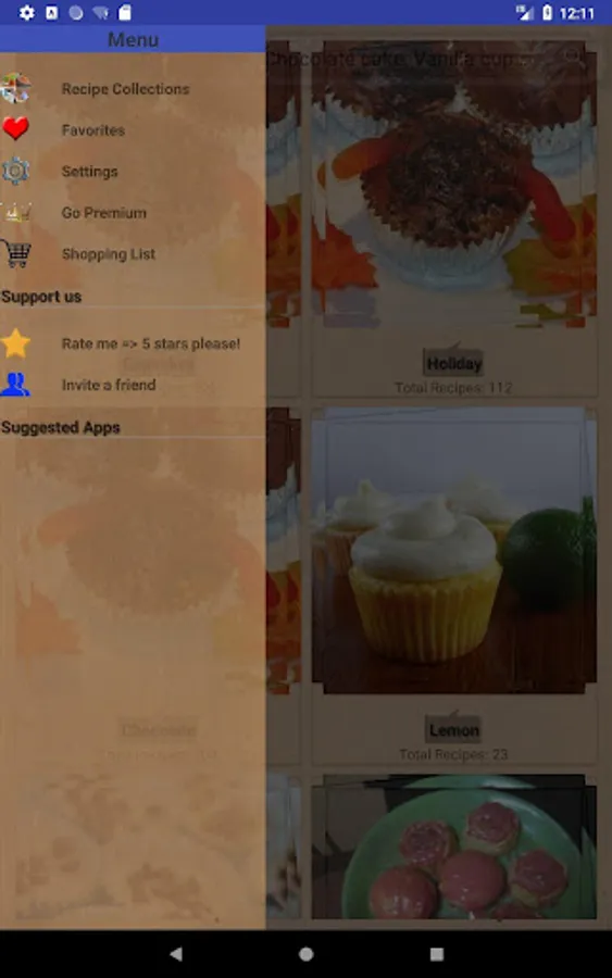 Cupcake Recipes ~ Chocolate cake, Vanilla cupcake a comprehensive cookbook with variety of delicious and healthy recipes. Cupcake Recipes ~ Chocolate cake, Vanilla cupcake have Quick and easy recipes and homemade recipes. We provide you the best Cupcake Recipes ~ Chocolate cake, Vanilla cupcake which you will love to cook or prepare. All recipes are yummy and tasty. Even kids can prepare delicious Cupcake Recipes ~ Chocolate cake, Vanilla cupcake very easily using this free app. This application is completely free for all time. You can search the recipe you needs to cook by recipe name,recipe category name etc. This app is a perfectly designed cookbook. The interface of this app is very nicely designed. You can also access recipes without internet by adding recipes to offline collection. You can share your loved recipes to your loved ones. All recipes in our app "Cupcake Recipes ~ Chocolate cake, Vanilla cupcake" are very easy to prepare and cook. And our app has step by step guidance for preparation. Bookmark and manage your favorite foods recipes.