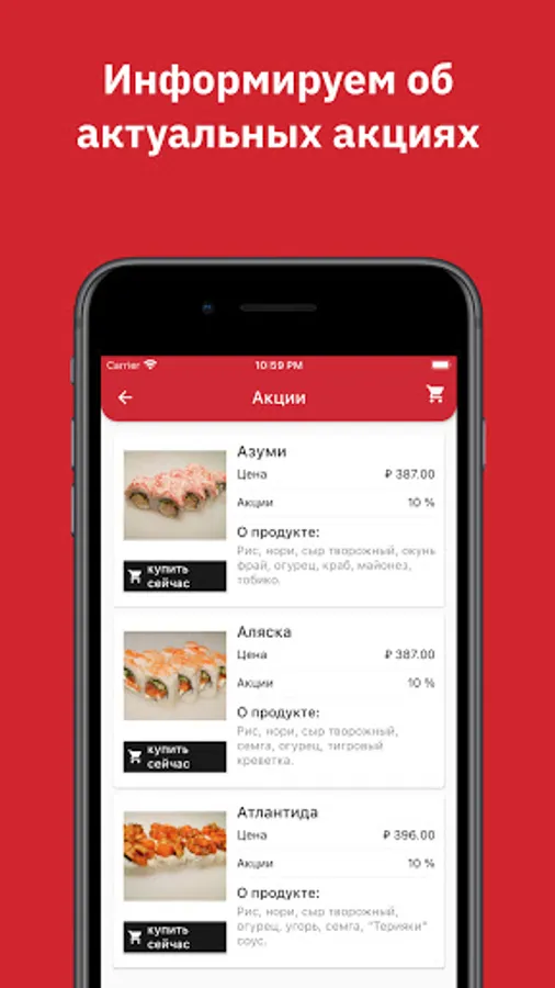 Мобильное приложение позволяет оформить доставку заказа домой или в офис. С помощью данного приложения можно оформить заказ в 3 клика. Копить бонусные баллы. Сохранить личную информацию, чтобы в дальнейшем не тратить время на повторный ее ввод в бланк заказа. Добавляйте любимые блюда в избранное, следите за акциями, историей и статусом готовности своих заказов!