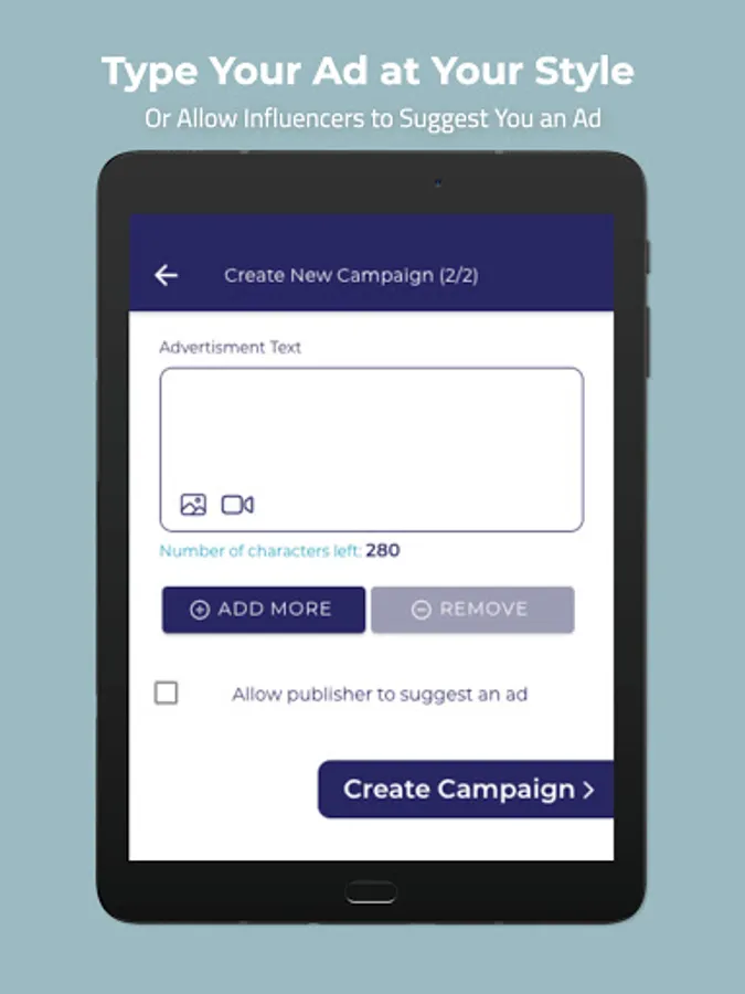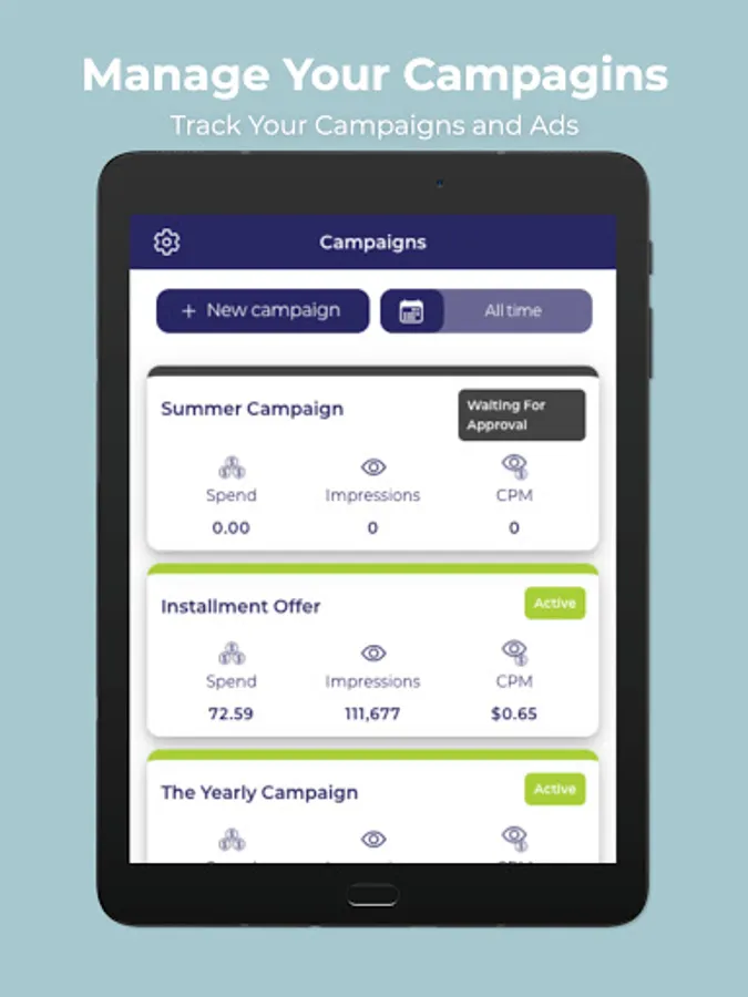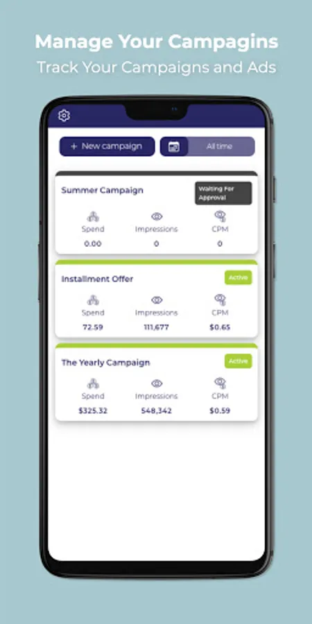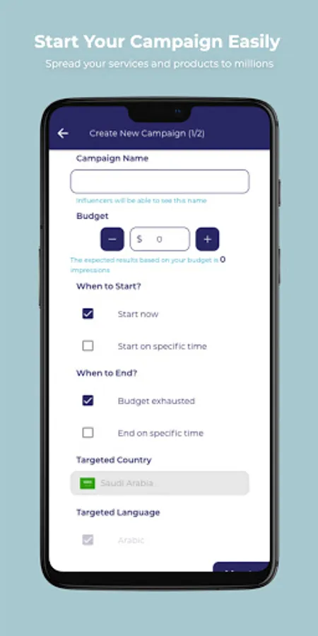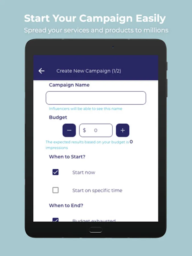 For advertisers, the advertiser can set the budget as he likes, with a minimum of $10, and the app will show the expected number of impressions that the campaign might get based on its budget and launch time.