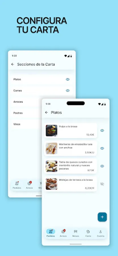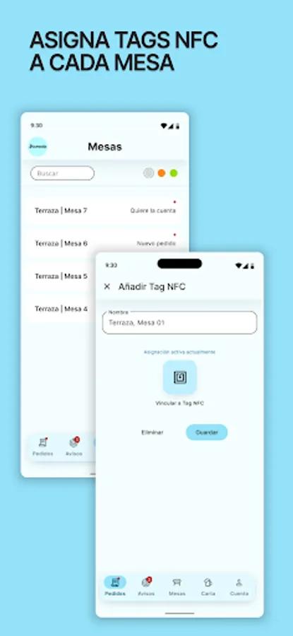 Taula Business allows you to configure your business menu, receive notifications and orders from the tables, as well as assign NFC Tags to each of the tables.