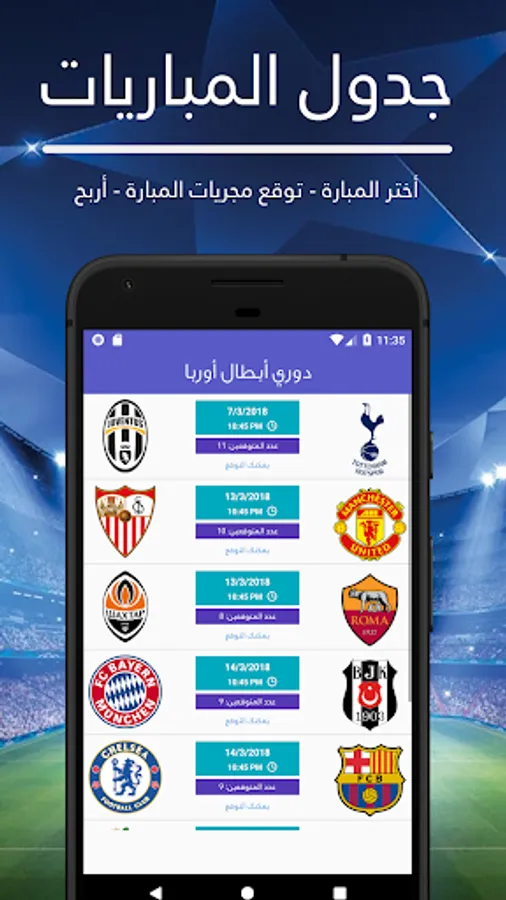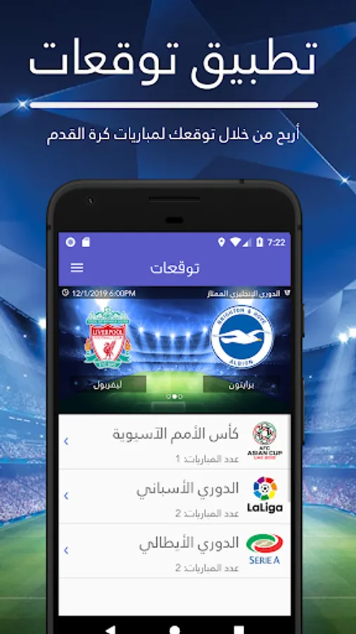الأن حمل تطبيق توقعات و أربح من خلال توقعاتك لمباريات كرة القدم