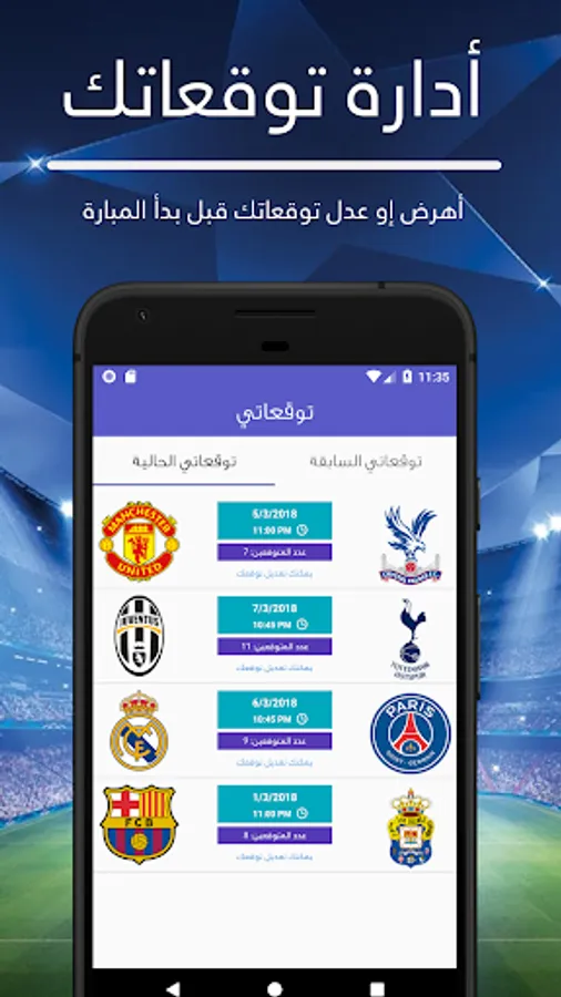 مع تطبيق توقعات يمكنك أن تتوقع نتائج مباريات كرة القدم و الربح من توقعك الصحيح