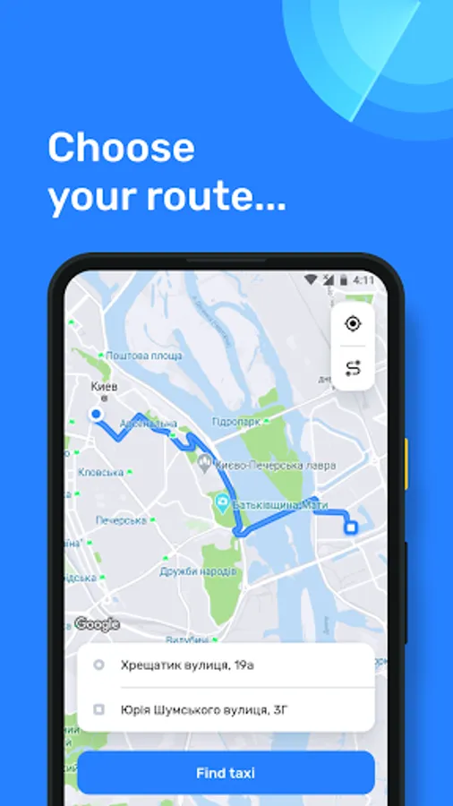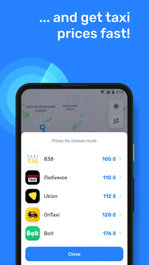 Using Taxifinder, you can choose your route and compare prices for the trip among the most popular taxi services in Ukraine.