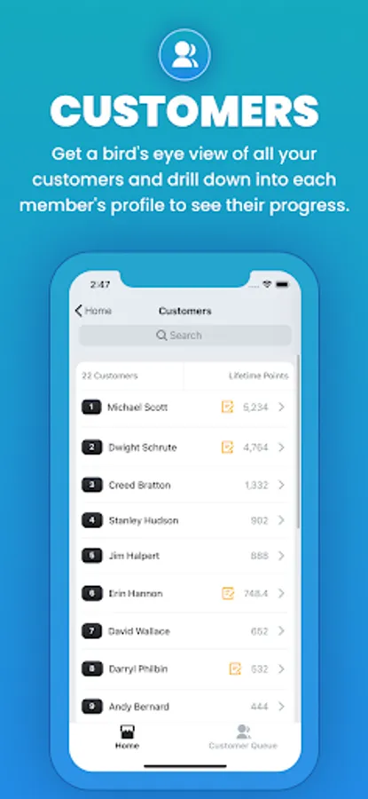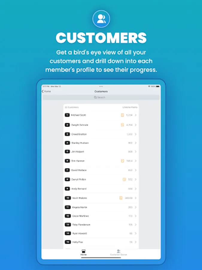 Get a bird's eye view of all your customers and drill down into each member's profile to see their progress.