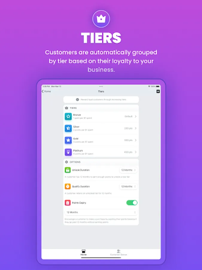 Customers are automatically grouped by tier based on their engagement and loyalty to your business.