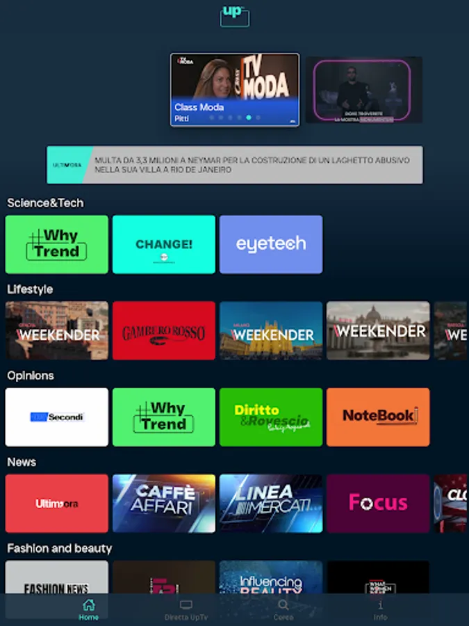 Born in 1989 from the idea of Telesia Spa to transform the notorious "non-places" of Marc Augè and their long boring waits into moments of updating and entertainment, when smartphones did not yet exist, today UpTv has redone its makeup and is ready to enrich its offer with a completely new app, in line with those dedicated to the world of entertainment and information.