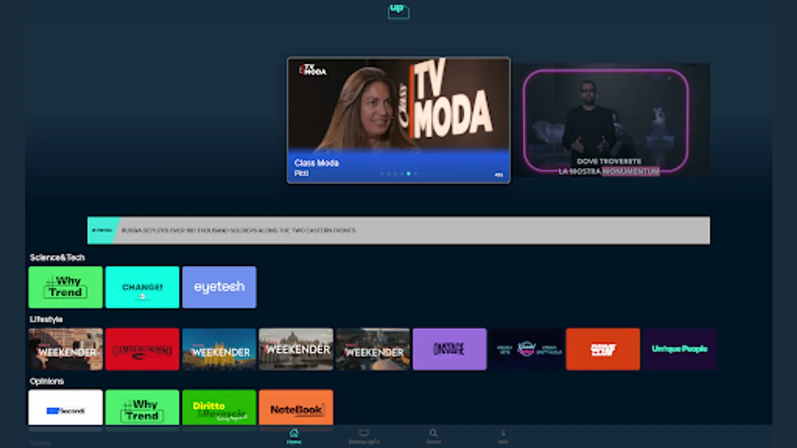 Conceived, created, edited and broadcast by Telesia Spa, a company listed on the Milan Stock Exchange and owned by the Class Editori Group, UpTv is the television that broadcasts exclusive content, entirely produced in-house.