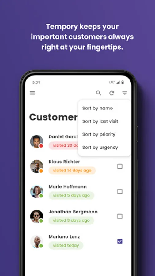 Tempory is an easy-to-use app that helps employees manage the increasing number of customers and visits, thereby improving your customer relationship. Completely without manual Excel spreadsheets.