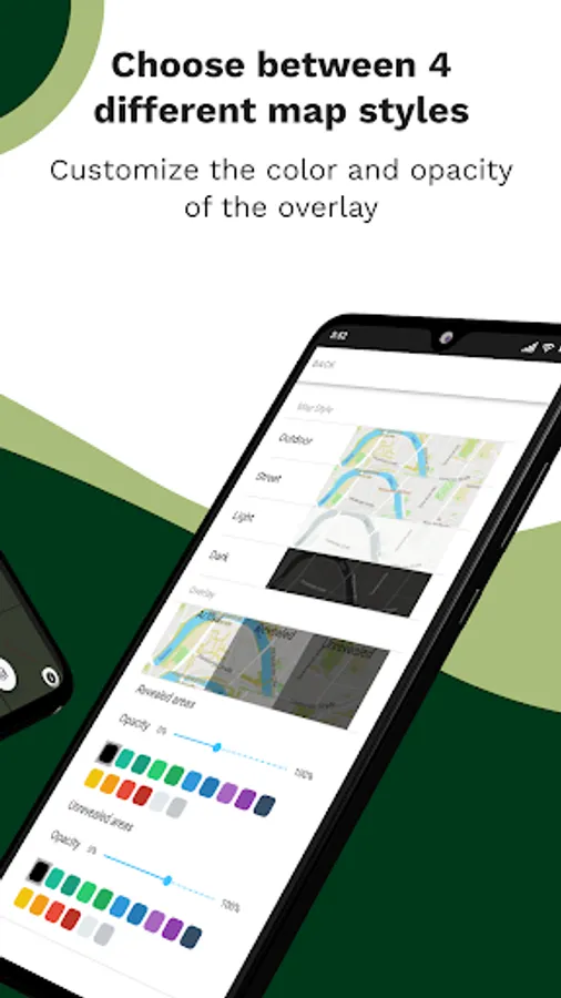Plus, you can customize the colors and opacity of each area and change map styles (street, outdoor, light, dark).
