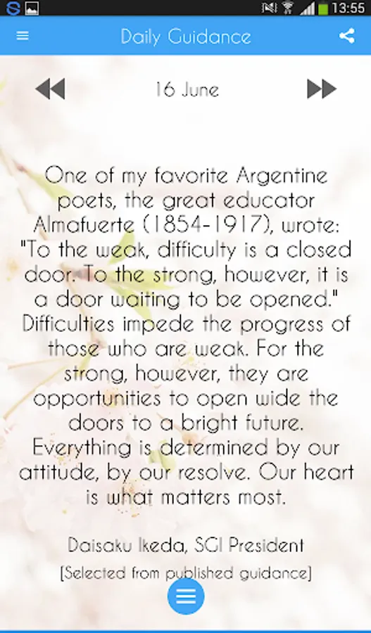 The Bodhisattva Way is an application which is created for Soka Gakkai members. This application has been created keeping in mind the focus of our mentor and the spirit of Gakkai. To exert ourselves like never before and expand our life, this application will remind you and let you keep a track of your goals and determinations.