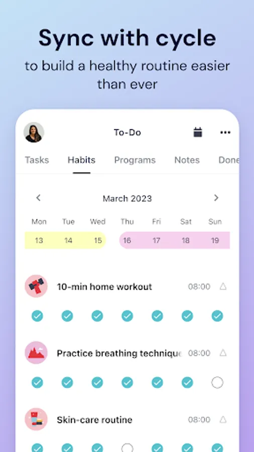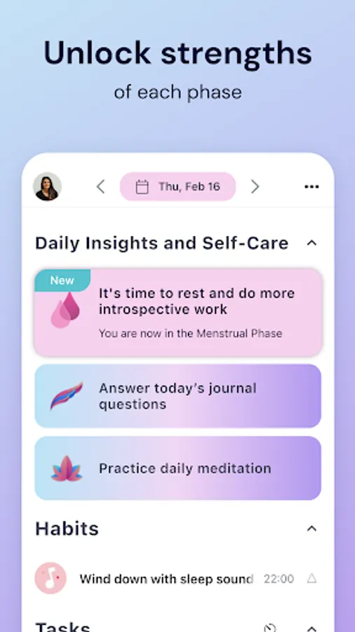Essence is much more than a period tracker - it helps you unlock the hidden superpowers of each cycle phase to work with your periods, not against them. Intelligent task planner helps women* stay organized and focused and most importantly take care of themselves during the cycle. By taking into account the changes in your energy levels and mood swings, the app recommends the best time for performing certain tasks, gives daily insights on workouts and nutrition.