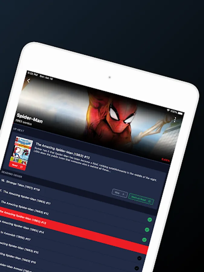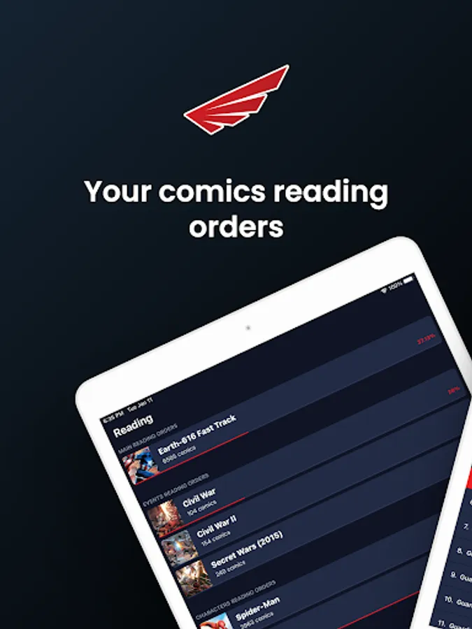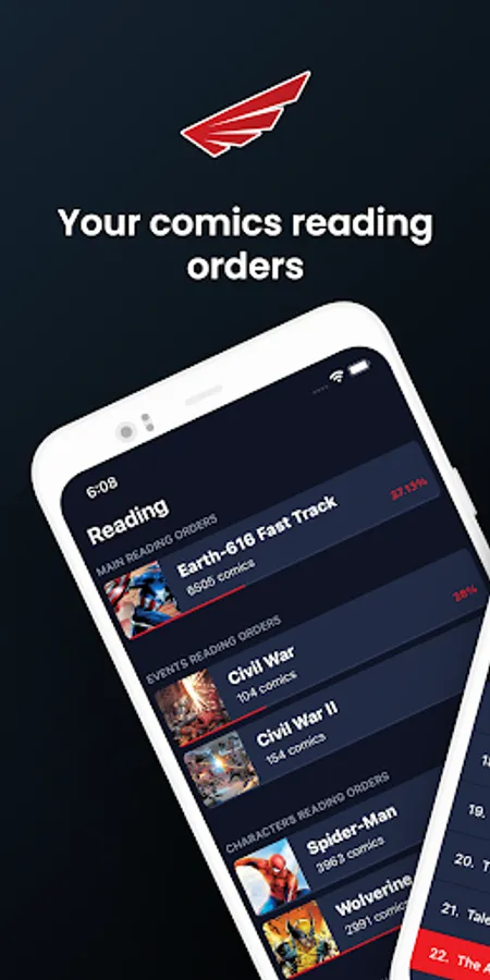 Redwing is a companion app that provides the reading order for your favorite comics and allows you to keep track of your progress.