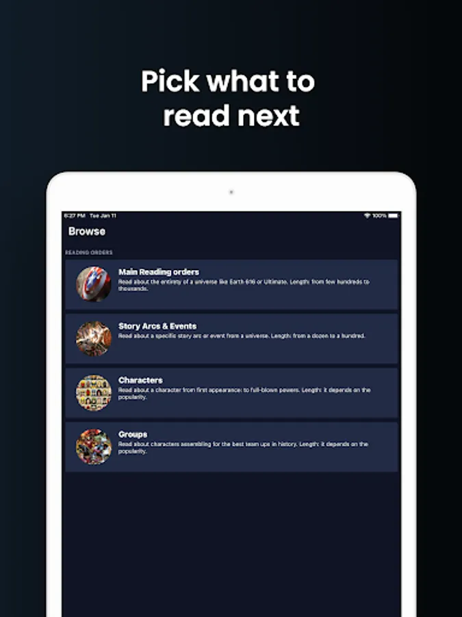 Keep track of where you are in your reading. Wherever you decided to start, see all the characters origins, story arcs and the where you are in the main order.