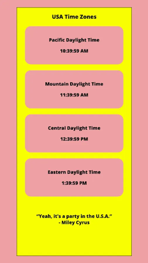 SunTime USA is a simple app that displays the current time in four USA time zones.