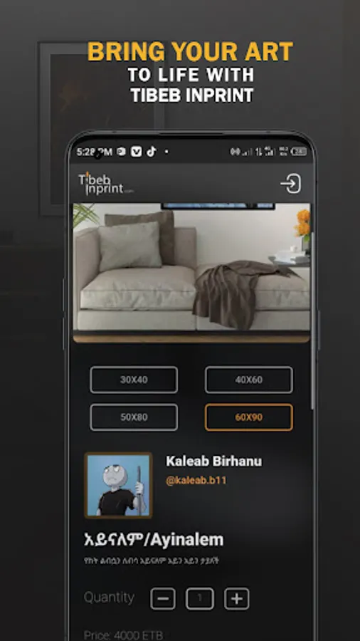 We are thrilled to announce the launch of the TibebInPrint app! Our app allows art lovers and collectors to discover and purchase original artwork from emerging artists from Ethiopia. With just a few taps, you can explore a vast collection of paintings, illustrations, and digital art from talented creators. The app also makes it easy to stay up to date with the latest releases and connect with artists and fellow art enthusiasts. Our mission is to make art more accessible and to support emerging artists in their careers. Download the TibebInPrint app today and join us in celebrating creativity!