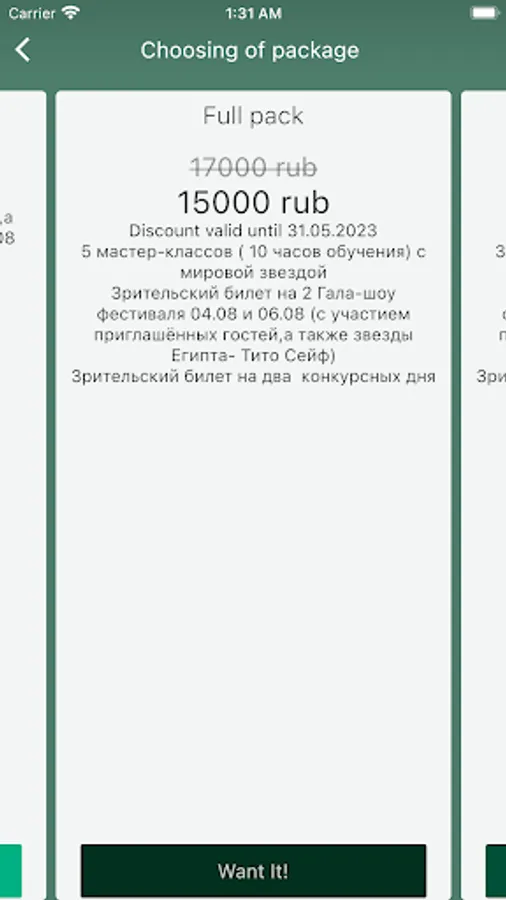 The application is designed to register for the festival, and also allows you to select nominations for participation in the competition.