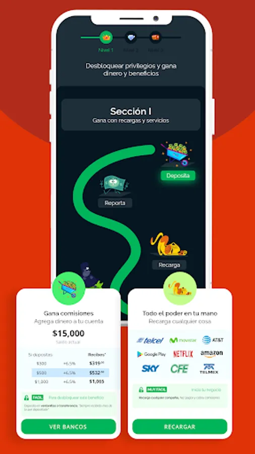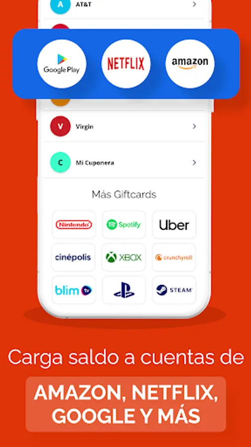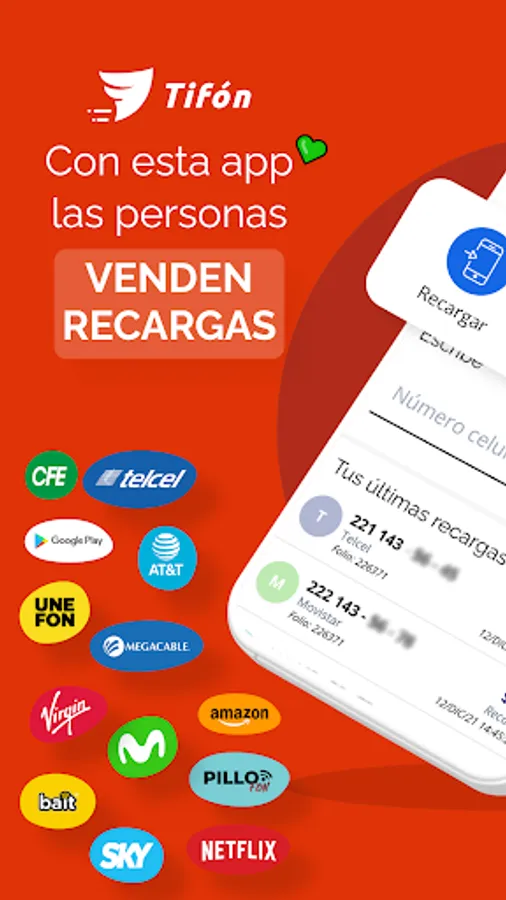 𝗩𝗘𝗡𝗗𝗘 𝗥𝗘𝗖𝗔𝗥𝗚𝗔𝗦 from all companies in Mexico (Telcel, AT&T, Movista r and others) and charges more than +𝟰𝟬𝟬 𝗦𝗘𝗥𝗩𝗜𝗖𝗜𝗢𝗦 (CFE, Sky VeTv, Telmex and many more), and the main 𝗚𝗜𝗙𝗧𝗖𝗔𝗥𝗗𝗦 in the world (Netflix, Amazon, Uber, Spotify, Google Play, Playstation and more), all from your cell phone 24/7