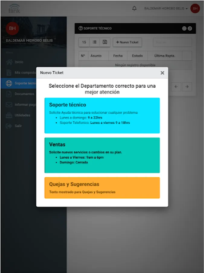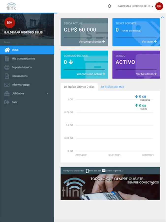 Here you can review your payment vouchers, download your invoices, report problems on the network, view your internet consumption, Open support ticket, among other functions.