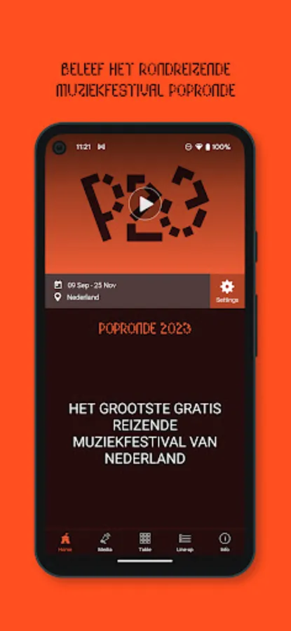 Popronde is het grootste reizende festival van Nederland, dat ieder najaar met de 100 grootste muzikale talenten door het land reist. In 42 steden worden poppodia, kroegen, kerken, kledingwinkels en kapperszaken omgetoverd tot festivalterrein, om jouw favoriete nieuwe act te ontdekken. Van pop tot metal, hiphop tot rock, indie, singer/songwriters, techno en jazz, Popronde biedt een breed scala aan genres, en brengt jou op de hoogte van de acts die je volgend festivalseizoen op de (grote) festivals gaat zien. Helemaal gratis toegankelijk!