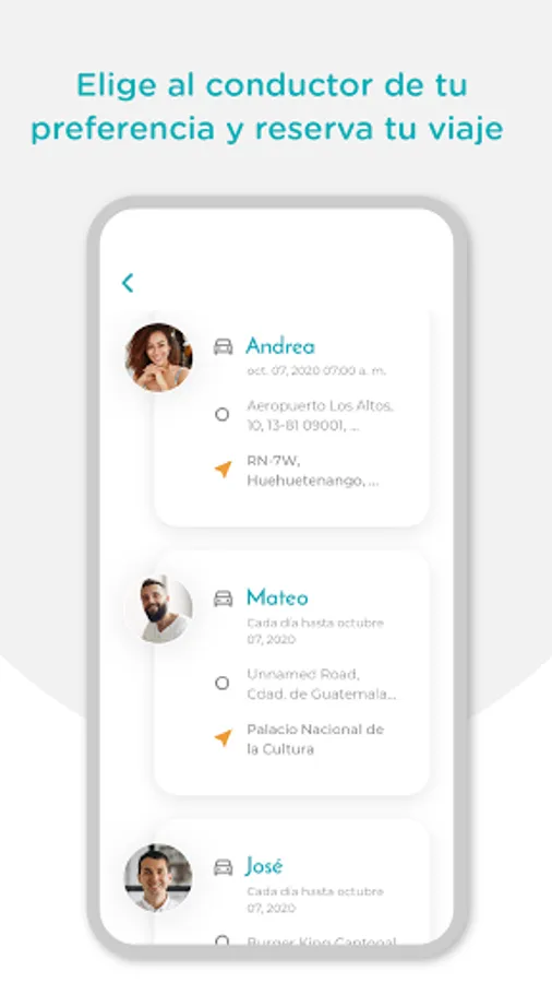 Ask for a milestone and find nearby drivers traveling in a comfortable, economical, safe and ecological way.