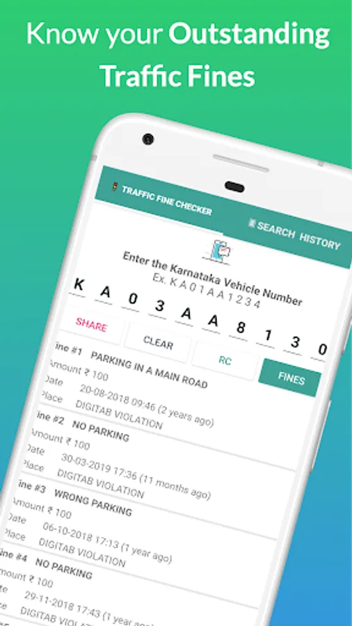 π₯ Single tap to find the vehicle list of Traffic fine history.
