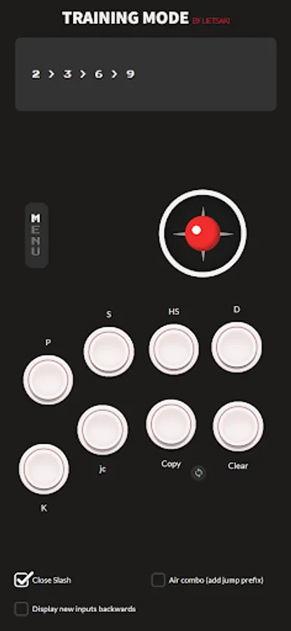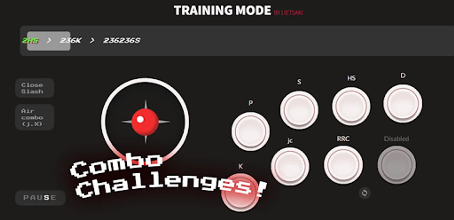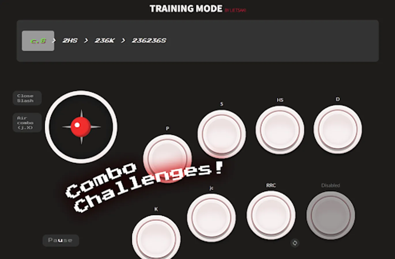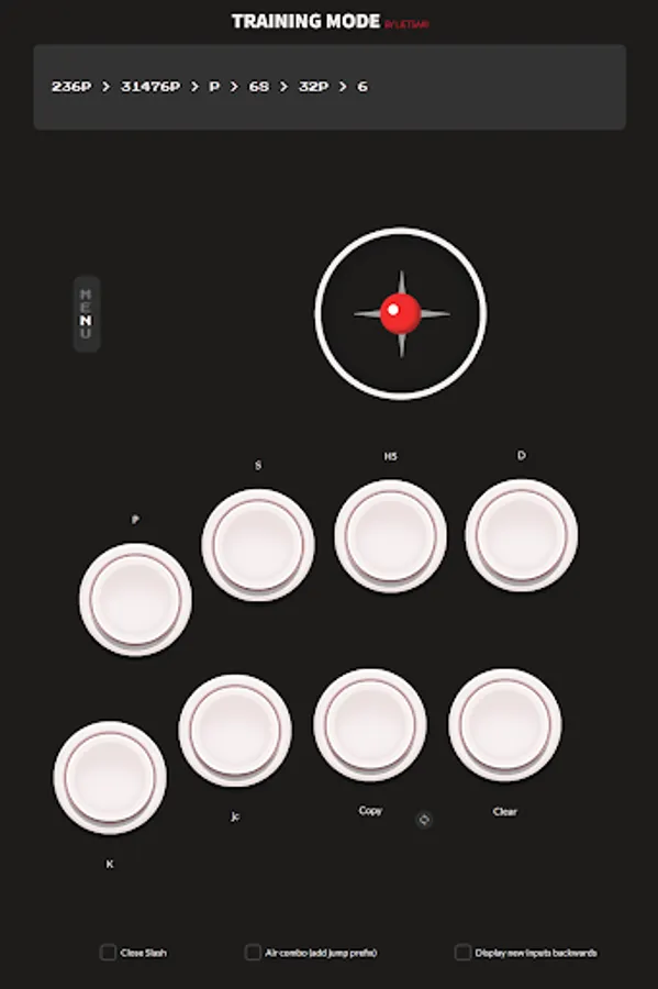 Learn Numpad Notation with a virtual joystick and buttons that look just like the ones in your arcade stick.