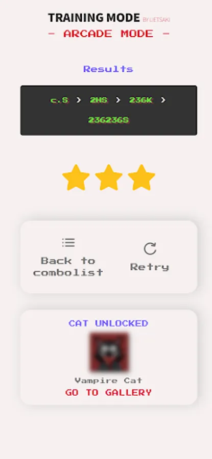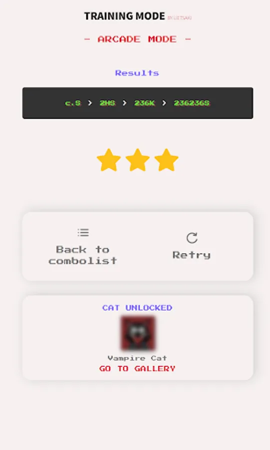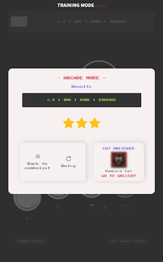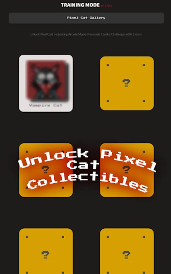 Replicate basic inputs like 2 > 3 > 6 > P that become 236P if chained correctly and take part in the Arcade Mode combo challenges to unlock a collectible gallery known as the Pixel Cats!