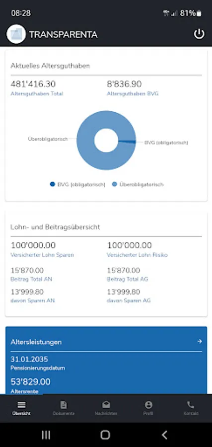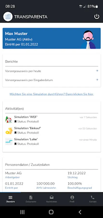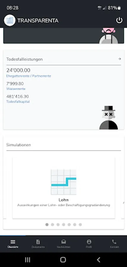 With the app version of "TRANSPARENTA-Online", our insured persons can access their personal insured person account directly and independently, carry out simulations and queries and exchange encrypted messages and documents with TRANSPARENTA.
