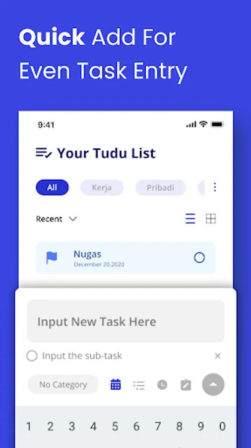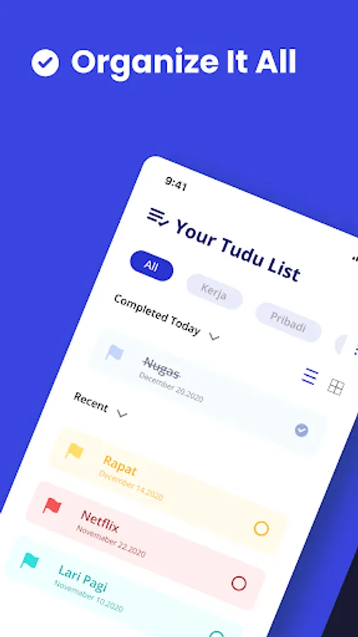 Aplikasi Tudu cocok untuk mengelola to do list yang kompleks. Misalnya, dengan aplikasi ini kamu bisa mencatat kegiatan yang harus kamu kerjakan dalam satu hari, satu minggu, atau bahkan satu bulan. Tudu hadir dengan user interface yang mudah digunakan dan tidak membingungkan.