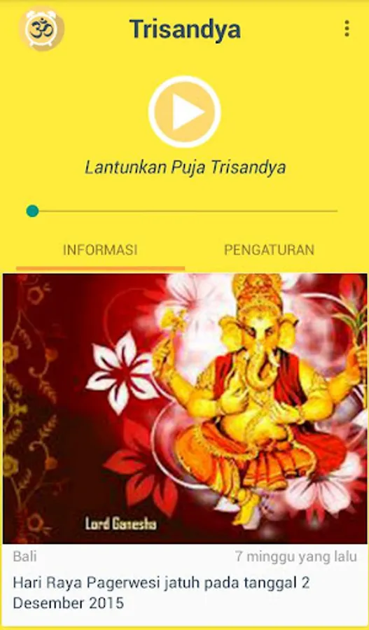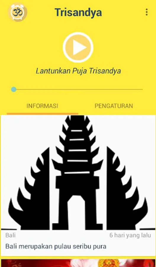 Aplikasi pengingat Trisandya (sembahyang 3 waktu). Gunakan smartphone untuk menemani anda berdoa tepat waktu. Membuat kita selalu terhubung 3x sehari dengan energi murni Tuhan dan terhindar dari derita duniawi. Selalu langkahkan kaki kita dalam bimbingan Tuhan dengan Trisandya... semoga bermanfaat.