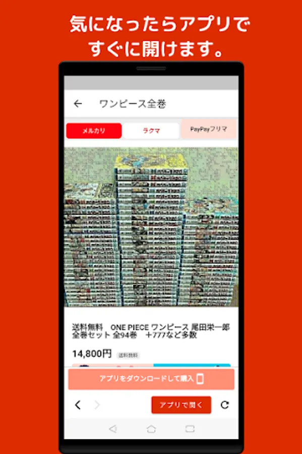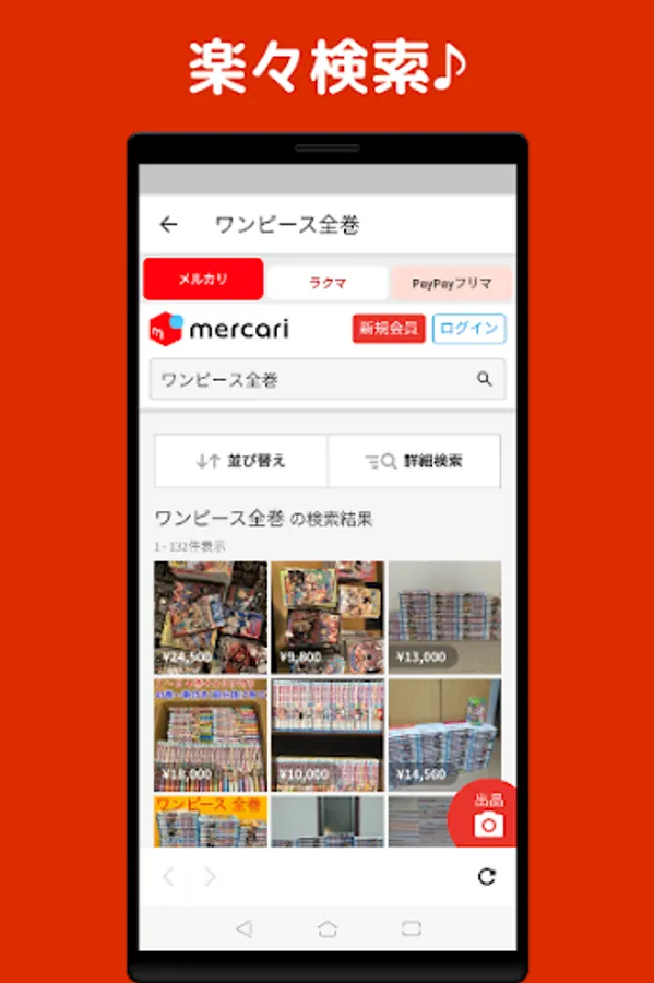 It is an application that allows you to search for "Mercali", "Rakuma" and "PayPay Flea Market" at once!