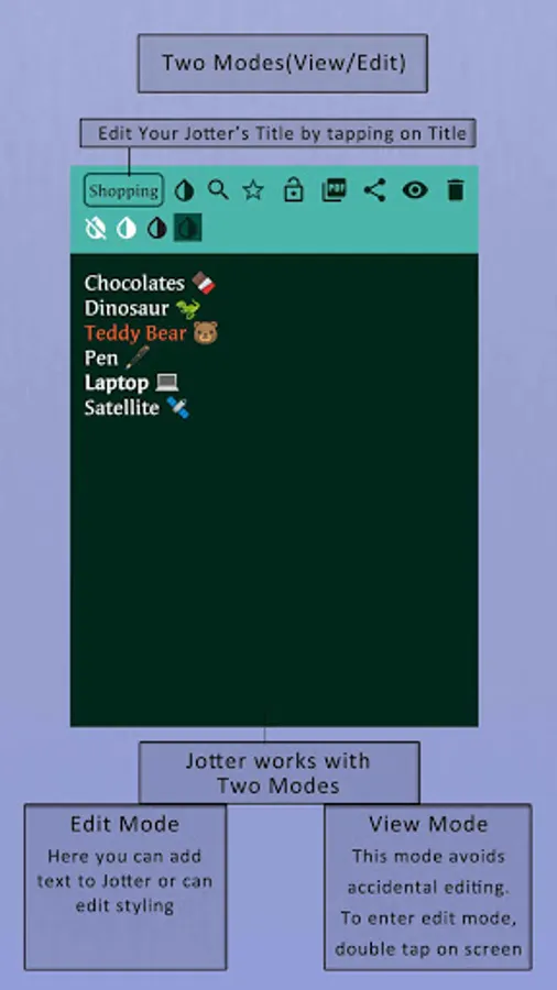 Jotter is a Rich Text Editor Android application. Rich Text Editor allows to type text/notes and style it. Jotter helps you to write and save your notes, thoughts, ideas or you can maintain a whole diary. And share them by converting in PDF and other formats.
