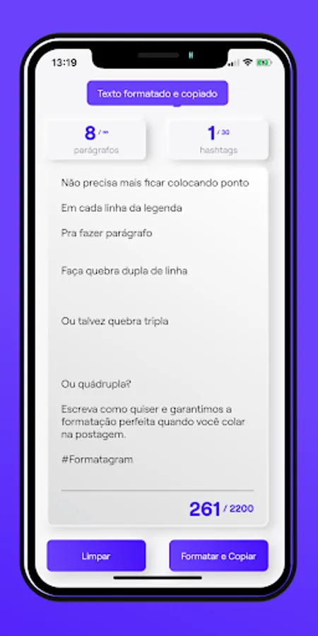 Normally giving spaces in the Instagram app is usually a boring task and once posted the text is not always the way you want it, this app solves the problem.