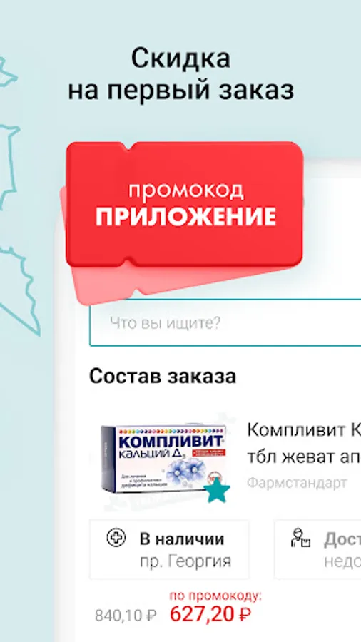 Install the application, buy the necessary medicines and place your first order using the promo code APPLICATION.