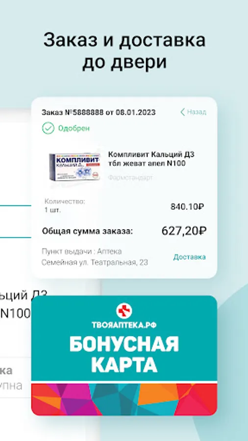 Track the status of the order and its receipt in pharmacies with the help of notifications of readiness. Here you can even order products that are not available in pharmacies.