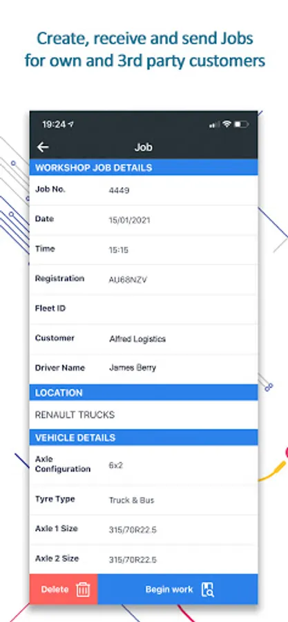 • Receive, complete, create and send jobs for service work, breakdowns or supply only, either for your own customers or other tyre businesses, sending job information straight into their operating system