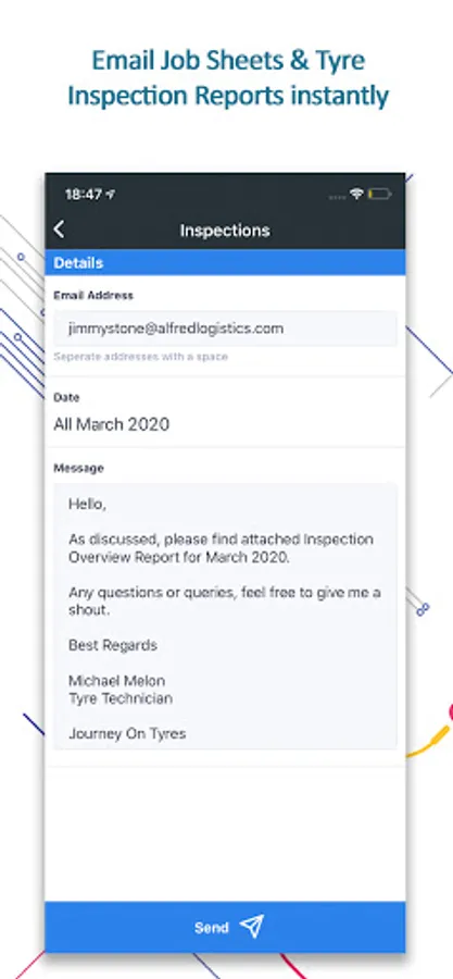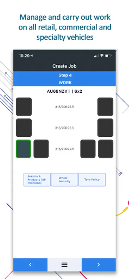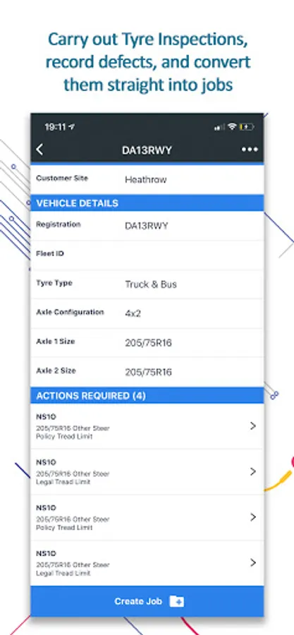 • Carry out Tyre Inspections, send reports directly to your customer, and turn action lists straight into work