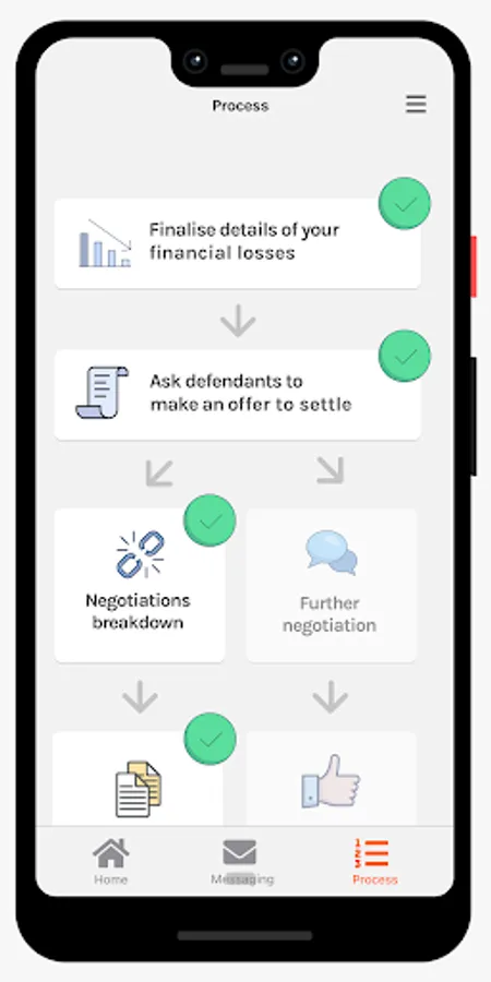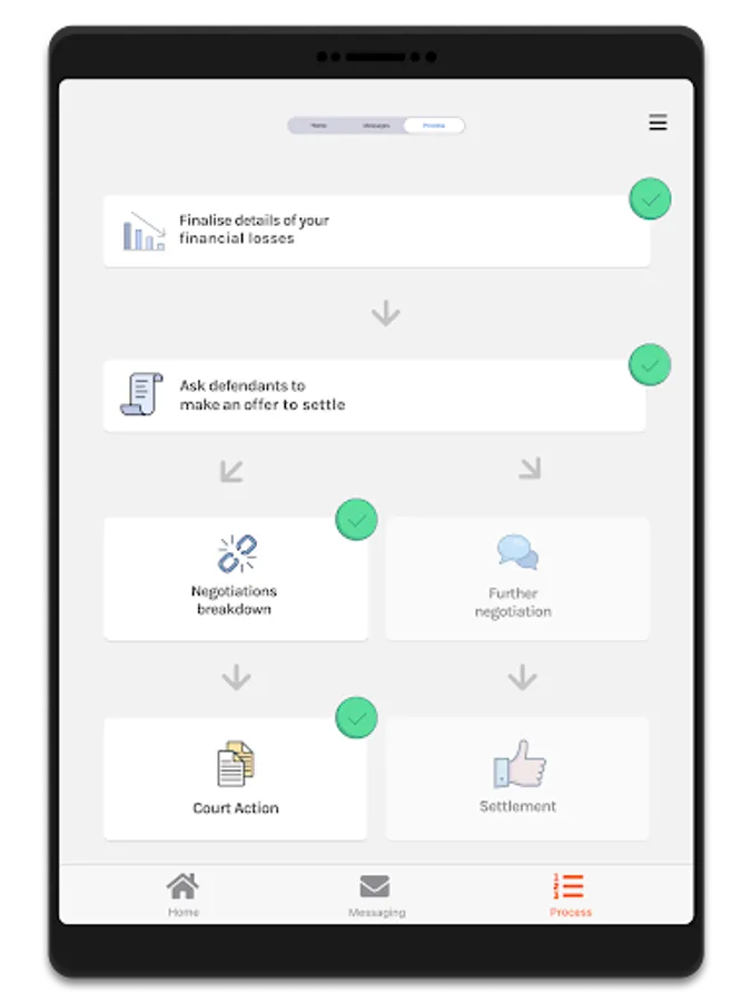 • Keep track of your case with a simple visual tracker, so you always know what’s happening.